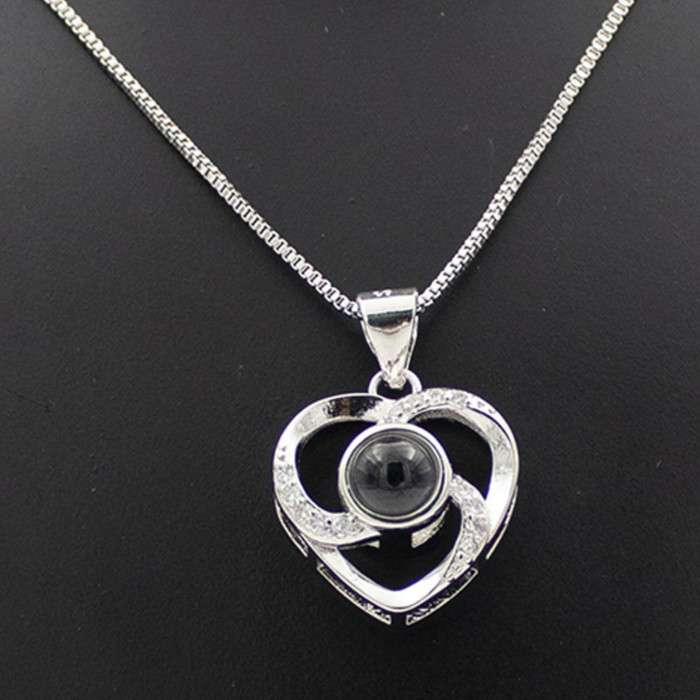 Romantic Memory Rose Heart Projection 100 Language I Love You Necklace for Lover Couples- Rose Gold